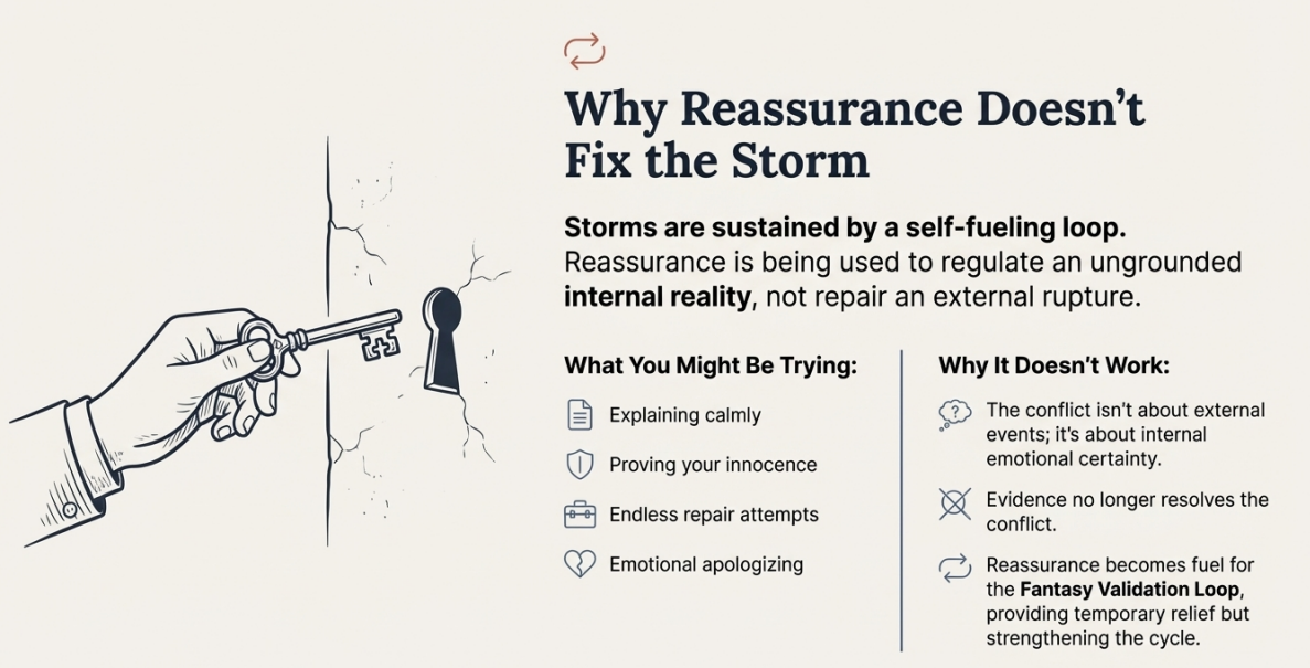 This framework is a relationship‑mechanics map. It is designed to help someone determine whether they are inside a reinforcing emotional cycle rather than a repairable conflict.